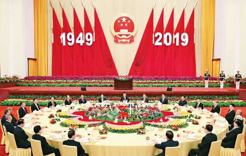 2019年9月30日晚,庆祝中华人民共和国成立70周年招待会在北京人民大会堂隆重举行。习近平、李克强、栗战书、汪洋、王沪宁、赵乐际、韩正、王岐山等党和国家领导人与4000余名中外人士欢聚一堂,共庆新中国70华诞。新华社记者 黄敬文 摄